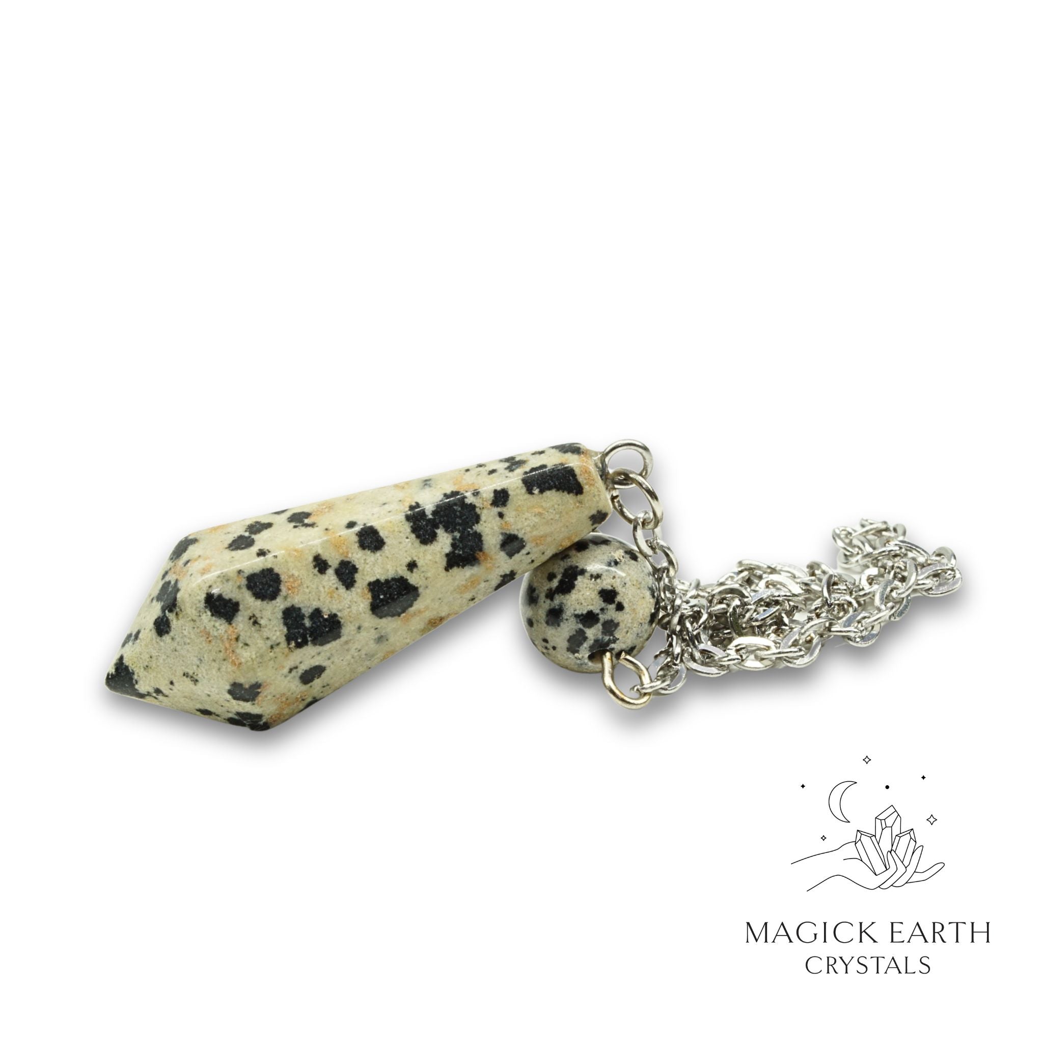 Our Dalmatian Jasper Faceted Bullet Pendulum delivers sharp, reliable directional energy for accurate readings, chakra checks, and clearing work.