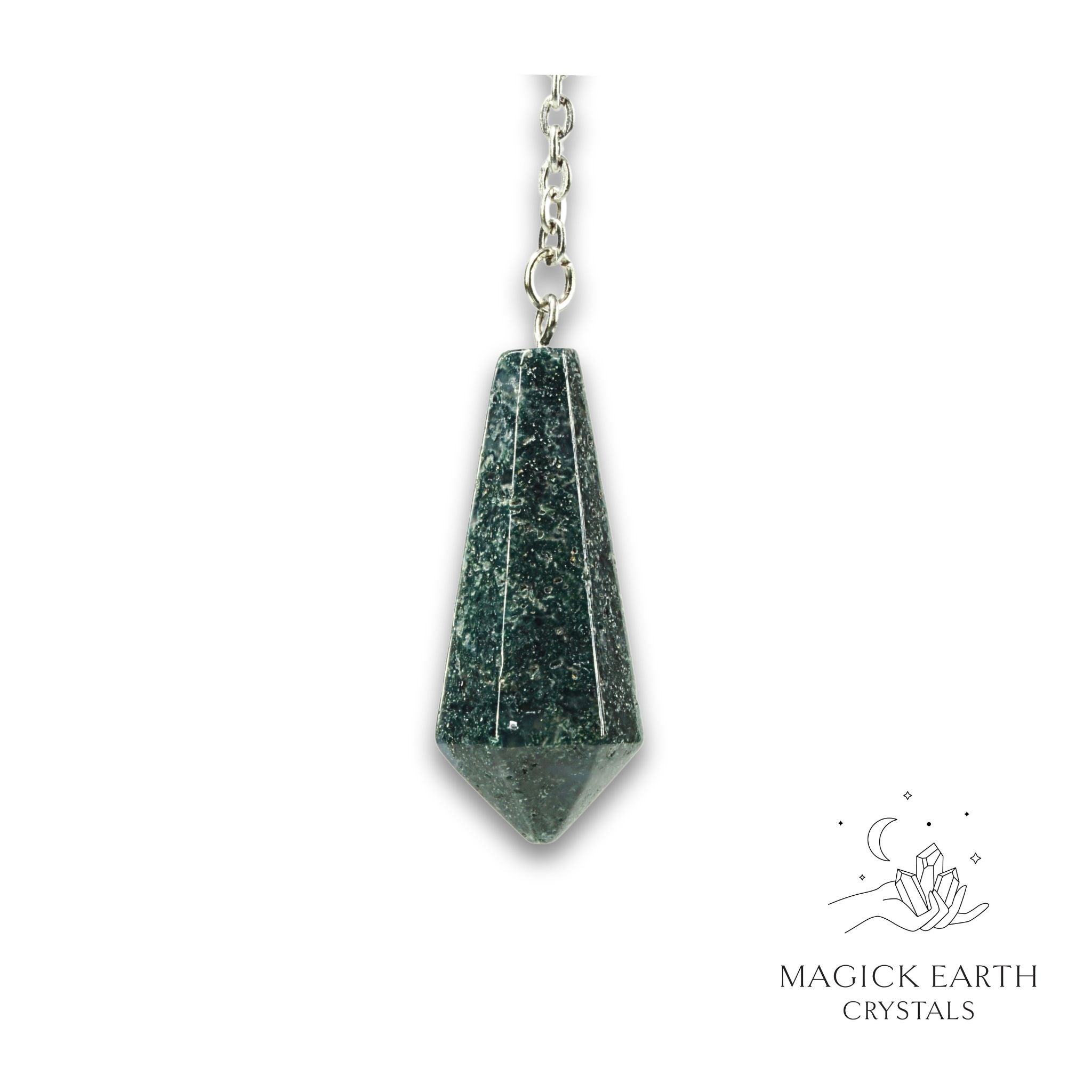 Tranquil Strength – Indian Agate Faceted Bullet Pendulum | Green