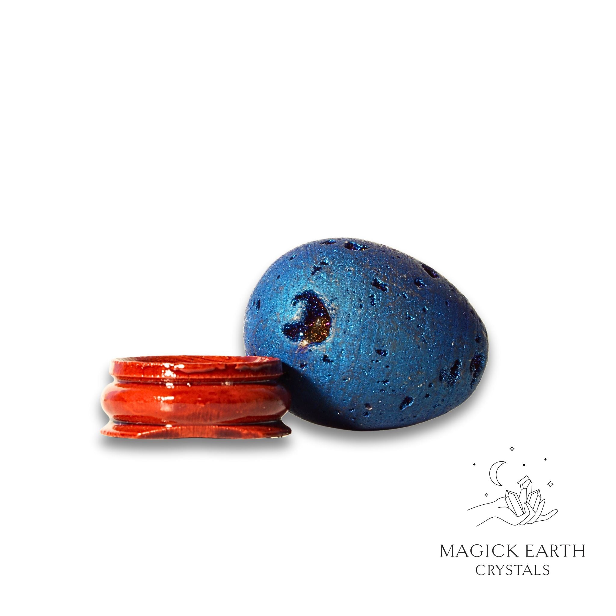 Electroplated Quartz Druzy Eggs combine the amplifying power of Quartz with the sparkle of druzy crystal. Our eggs are perfect for meditation, manifestation, spell work, gifting or keeping close as a reminder of fresh starts.