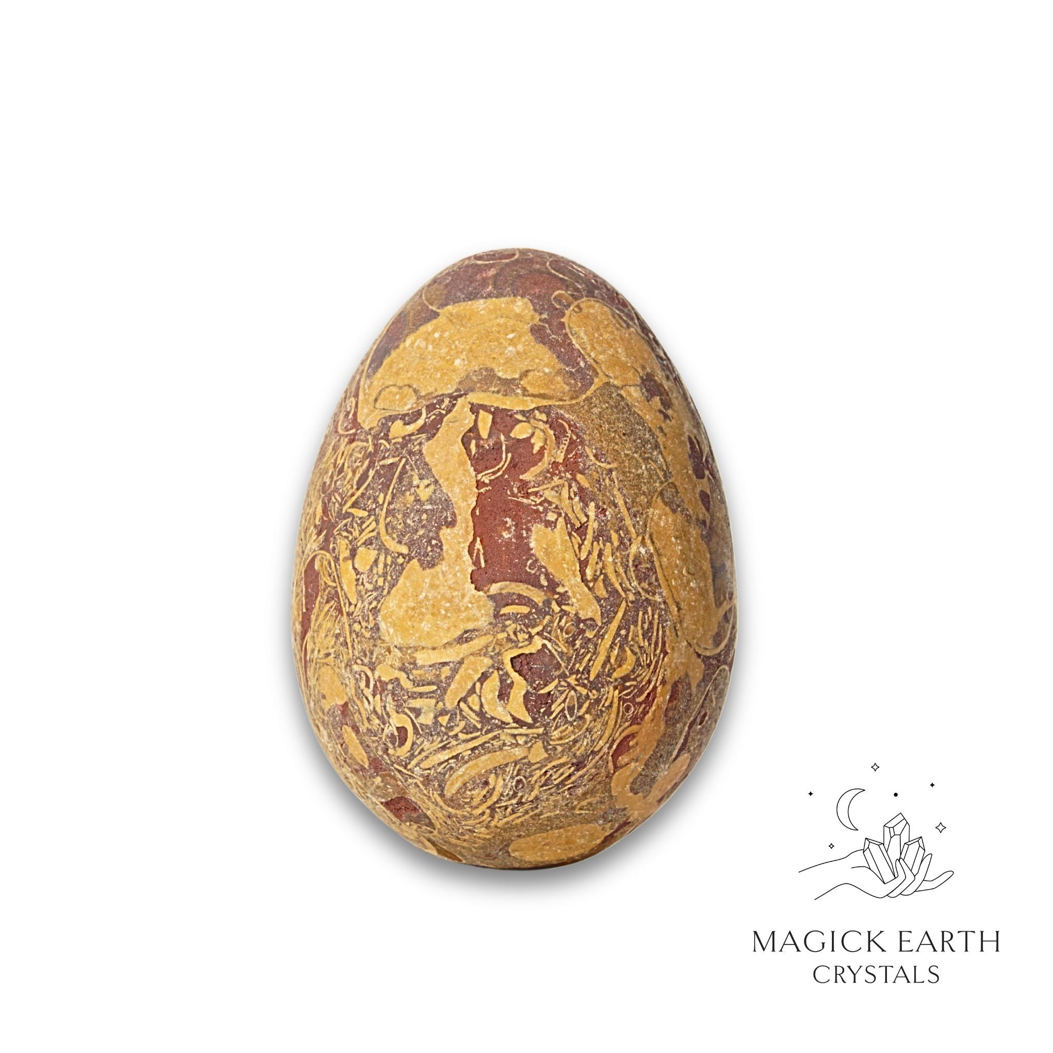 Our Calligraphy Jasper egg is smooth, grounding, and comfortable to hold, making it ideal for meditation, intention work, stress relief, massage or daily crystal practice.